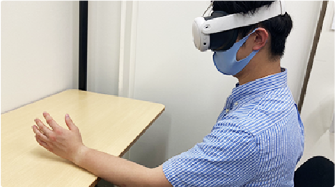 KINVIS(視覚誘導運動錯覚) 療法では、麻痺した手の上にCG映像を映し出し、あたかも自分の手が動いているように感じる運動錯覚を引き起こします。この錯覚が脳に働きかけ、実際の運動機能の回復を促すことが期待されています。脳卒中後の重度上肢麻痺がある方にも、運動の再学習や手の動かしやすさの改善を目的として行われます。